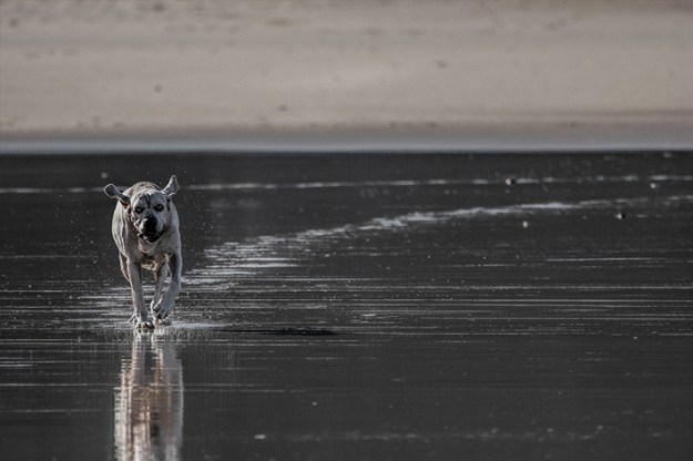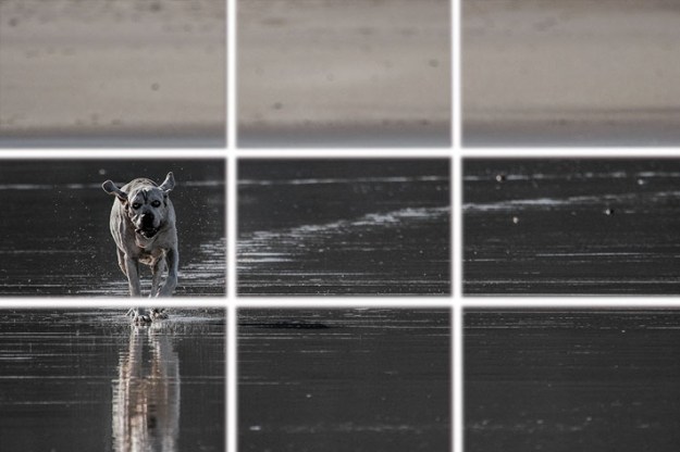 The first image I found was of a dog running across a wet beach. This is my example I found of the rule of thirds. What the rule of thirds is, is where an image is split into nine different squares. The top three are where the horizon is the middle three is usually where the focus of the image is, and the bottom three is where the ground usually is. In the image with the dog the horizon is on the top three. The dog is on the left side of the middle three becoming the focus of the image.